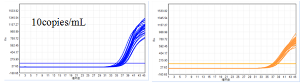 左图:N基因扩增曲线,右图:ORF 1ab基因扩增曲线