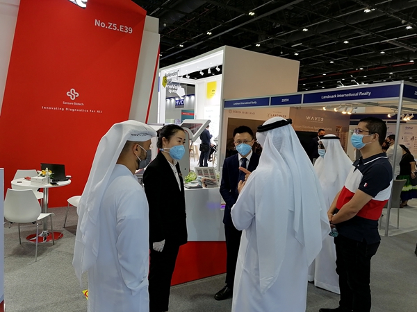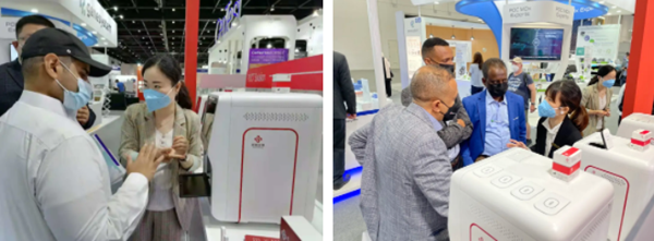 在全球疫情防控形势仍较严峻的情况下,参展之前,圣湘生物派遣了多支专业国际技术团队深入阿联酋各地医院,拜访终端客户,了解产品实际应用情况,进行培训带教,为他们提供最快的一线服务,及时解疑答惑。