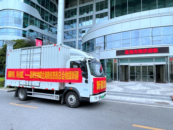 本轮疫情发生以来,吐鲁番防疫物资需求量不断增加。湖南省工业和信息化厅、湖南省民政厅、湖南省慈善总会获悉情况后,第一时间动员圣湘生物等湖南医药企业为吐鲁番捐赠防疫物资。接到驰援吐鲁番市的倡议后,圣湘生物第一时间建立了防疫物资快速反应保障专班,组织党员、团员、志愿者连夜清点物资、装运物资,装满两车防疫物资。