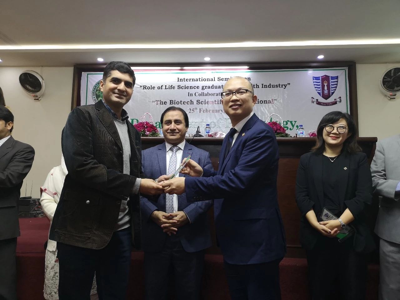 为更好地促进两方的交流与合作,讲座结束后,学校方举行了授牌仪式,向圣湘生物授予了“友好交流合作机构”荣誉,并期望双方未来可以有更加密切的联系,将分子诊断技术普及到巴基斯坦的每一个地区,惠及到每一位民众。